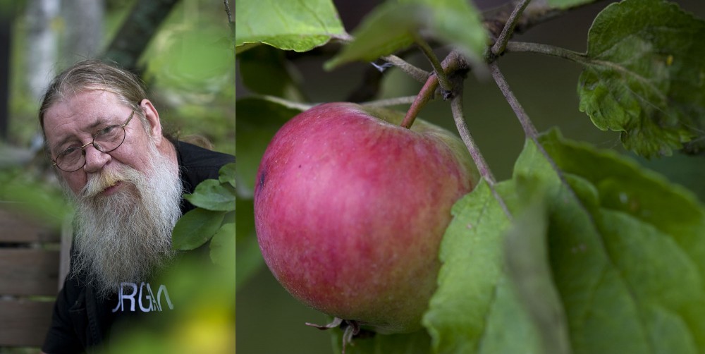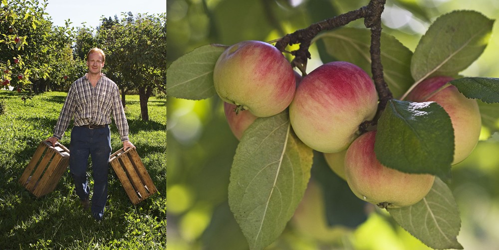 • apple farm and man